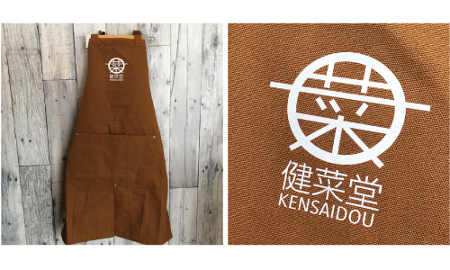 物産販売会用エプロンをご紹介!ロゴマークがしっかり映えて、PR効果もバッチリさらに、キャンバス素材ならではの風合いで、おしゃれ度がグッとアップですね。 -