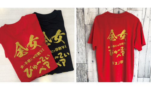 お仕事用のTシャツをご制作いただきました。「心」を込めた一文字もプラス。仕事もますます楽しくなる1枚です! -