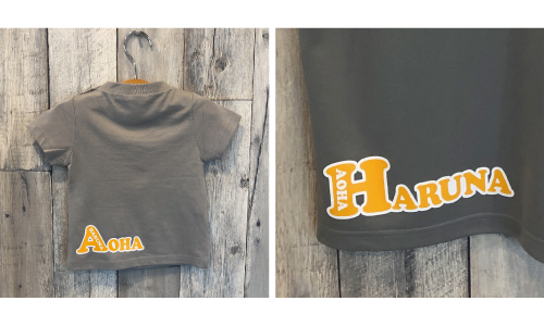 送別のプレゼントとして、親子でペアTシャツをおそろいに!チーム名にちなんだお花と、お名前入りの特別なデザインです。 -
