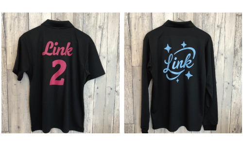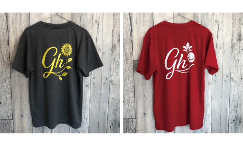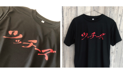フレッシュテニスTシャツを、赤と黒の色違いペアでご制作!スーパーグリッターでキラキラ光るプリントが、目を引くこと間違いなしです。 -