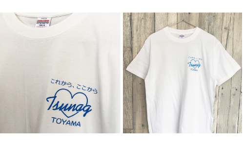 音楽イベント用オリジナルTシャツを制作させていただきました!左胸のハートの中に「TUNAGU」の文字で、見る人の心にもスッと届くような仕上がりに! -