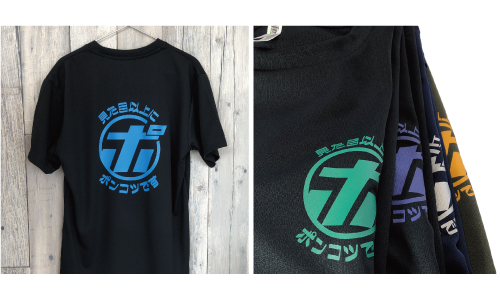 フレッシュテニスの仲間Tシャツです。チーム名の「ポ」の文字が遊び心いっぱいで楽しいデザイン。チームの一体感もUPですね!